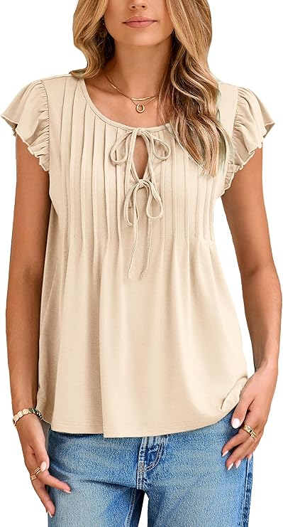 Tie Front Tops Dressy Casual Summer Ruffle Blouse